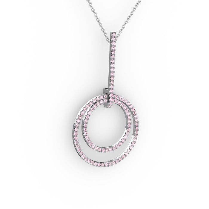 Pembe kuvars 14 ayar beyaz altın kolye (40 cm gümüş rolo zincir)