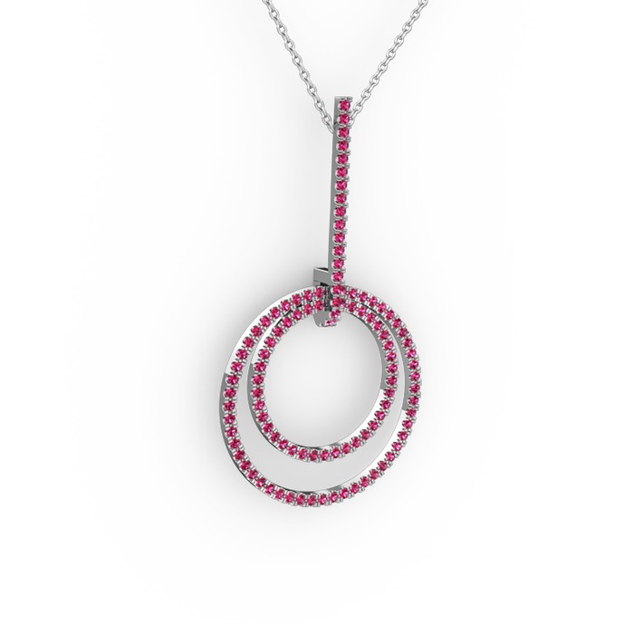 Rodolit garnet 14 ayar beyaz altın kolye (40 cm beyaz altın rolo zincir)