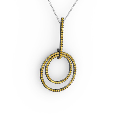 Sitrin 925 ayar siyah rodyum kaplama gümüş kolye (40 cm beyaz altın rolo zincir)