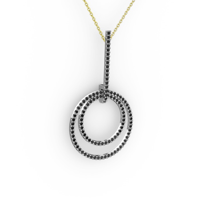 Siyah zirkon 925 ayar gümüş kolye (40 cm altın rolo zincir)