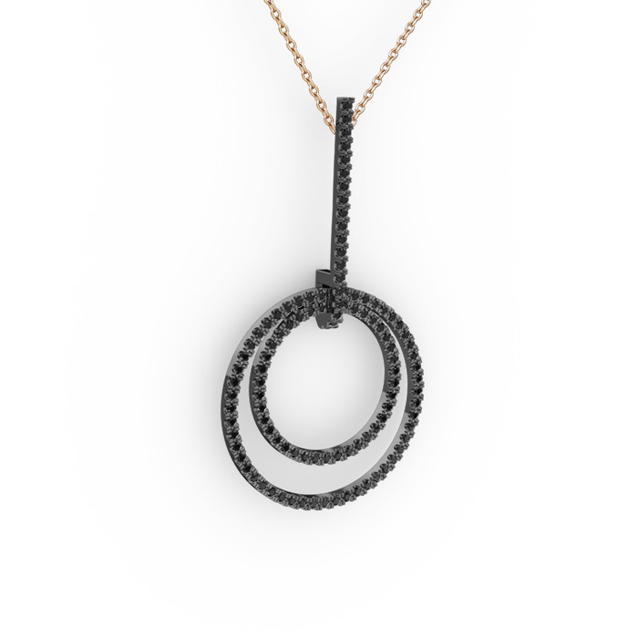 Siyah zirkon 925 ayar siyah rodyum kaplama gümüş kolye (40 cm gümüş rolo zincir)
