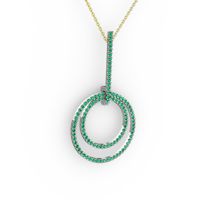 Yeşil kuvars 18 ayar beyaz altın kolye (40 cm gümüş rolo zincir)