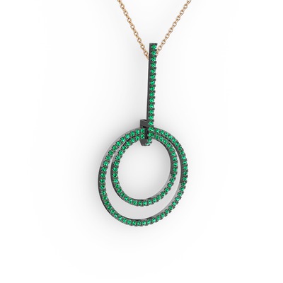 Yeşil kuvars 925 ayar siyah rodyum kaplama gümüş kolye (40 cm rose altın rolo zincir)