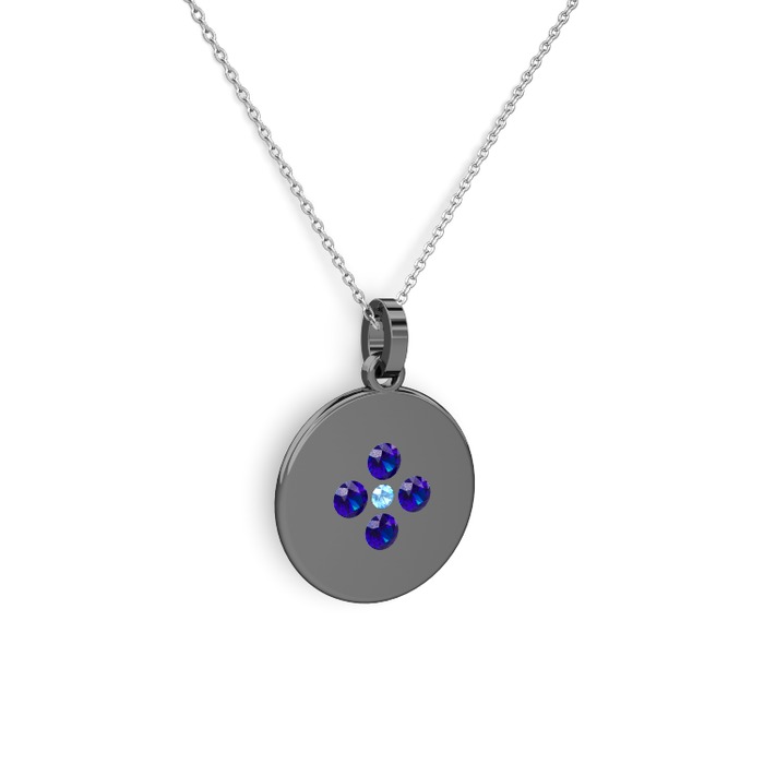Akuamarin ve lab safir 925 ayar siyah rodyum kaplama gümüş kolye (40 cm beyaz altın rolo zincir)