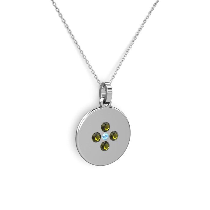 Akuamarin ve peridot 14 ayar beyaz altın kolye (40 cm beyaz altın rolo zincir)