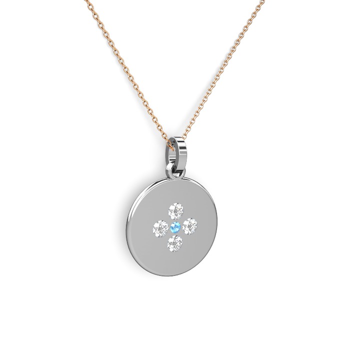 Akuamarin ve pırlanta 14 ayar beyaz altın kolye (0.44 karat, 40 cm rose altın rolo zincir)
