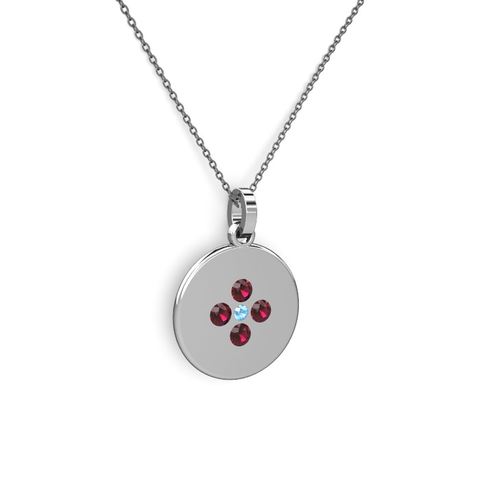Akuamarin ve rodolit garnet 18 ayar beyaz altın kolye (40 cm gümüş rolo zincir)