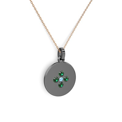 Akuamarin ve yeşil kuvars 925 ayar siyah rodyum kaplama gümüş kolye (40 cm gümüş rolo zincir)