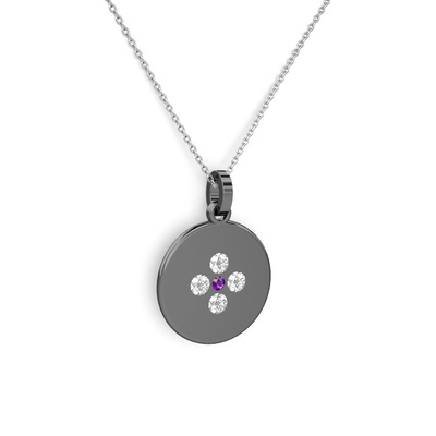Ametist ve beyaz zirkon 925 ayar siyah rodyum kaplama gümüş kolye (40 cm beyaz altın rolo zincir)