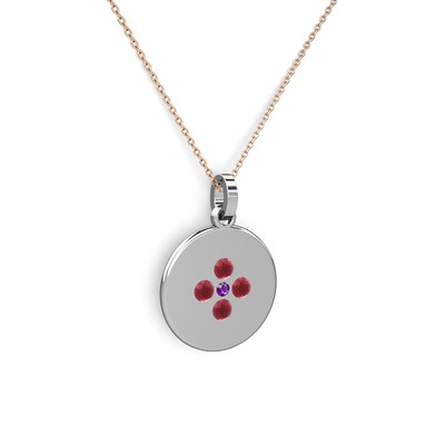 Ametist ve kök yakut 18 ayar beyaz altın kolye (40 cm rose altın rolo zincir)