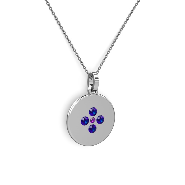 Ametist ve lab safir 18 ayar beyaz altın kolye (40 cm gümüş rolo zincir)