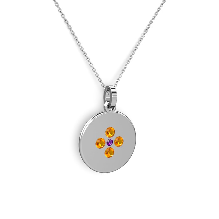 Ametist ve sitrin 8 ayar beyaz altın kolye (40 cm beyaz altın rolo zincir)