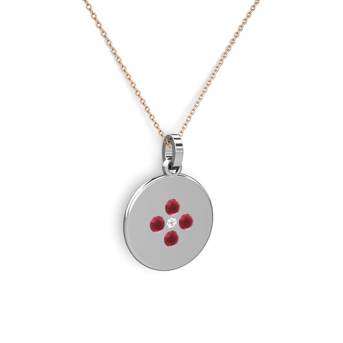 Beyaz zirkon ve kök yakut 925 ayar gümüş kolye (40 cm rose altın rolo zincir)