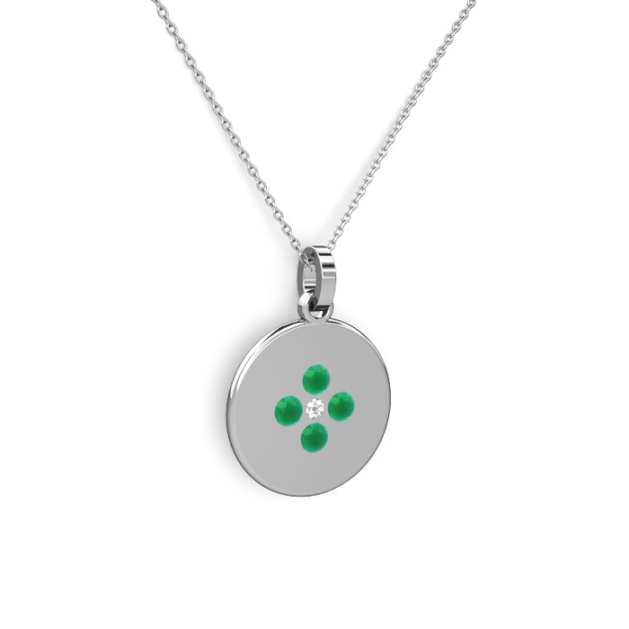 Beyaz zirkon ve kök zümrüt 18 ayar beyaz altın kolye (40 cm beyaz altın rolo zincir)