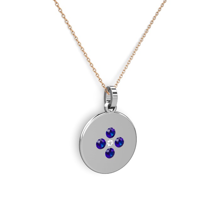 Beyaz zirkon ve lab safir 18 ayar beyaz altın kolye (40 cm rose altın rolo zincir)