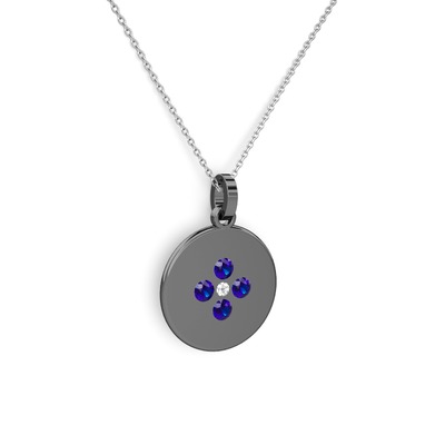 Beyaz zirkon ve lab safir 925 ayar siyah rodyum kaplama gümüş kolye (40 cm beyaz altın rolo zincir)