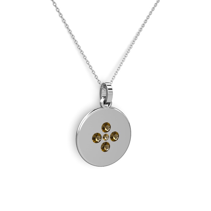 Dumanlı kuvars 8 ayar beyaz altın kolye (40 cm beyaz altın rolo zincir)