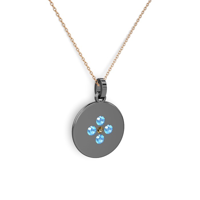 Dumanlı kuvars ve akuamarin 925 ayar siyah rodyum kaplama gümüş kolye (40 cm gümüş rolo zincir)