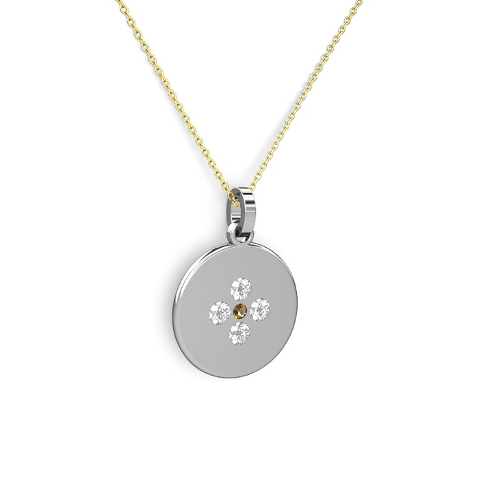 Dumanlı kuvars ve pırlanta 8 ayar beyaz altın kolye (0.44 karat, 40 cm gümüş rolo zincir)
