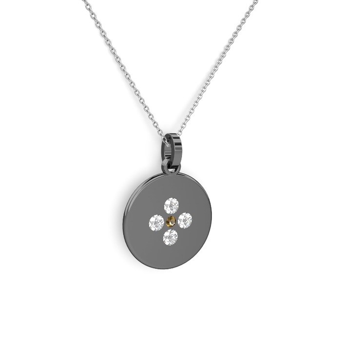 Dumanlı kuvars ve pırlanta 925 ayar siyah rodyum kaplama gümüş kolye (0.44 karat, 40 cm beyaz altın rolo zincir)