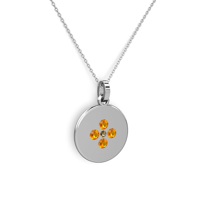 Dumanlı kuvars ve sitrin 14 ayar beyaz altın kolye (40 cm beyaz altın rolo zincir)