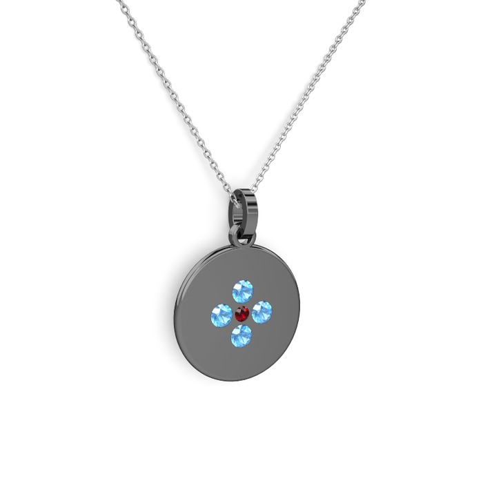 Garnet ve akuamarin 925 ayar siyah rodyum kaplama gümüş kolye (40 cm beyaz altın rolo zincir)