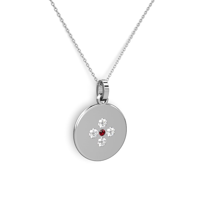 Garnet ve pırlanta 14 ayar beyaz altın kolye (0.44 karat, 40 cm beyaz altın rolo zincir)