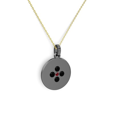 Garnet ve siyah zirkon 925 ayar siyah rodyum kaplama gümüş kolye (40 cm gümüş rolo zincir)