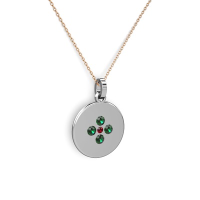 Garnet ve yeşil kuvars 8 ayar beyaz altın kolye (40 cm gümüş rolo zincir)