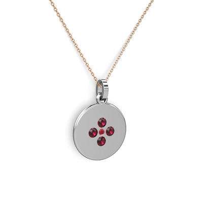 Kök yakut ve rodolit garnet 18 ayar beyaz altın kolye (40 cm rose altın rolo zincir)