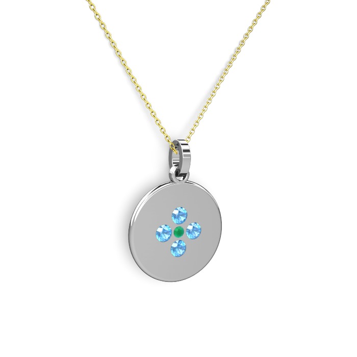 Kök zümrüt ve akuamarin 14 ayar beyaz altın kolye (40 cm altın rolo zincir)