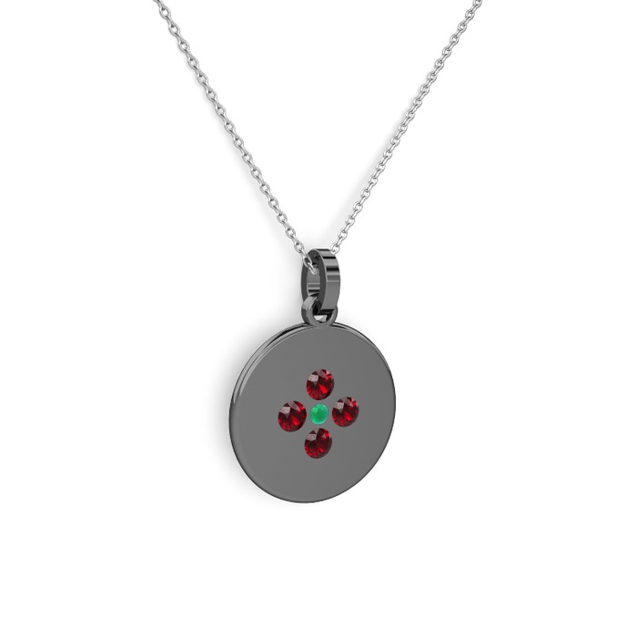 Kök zümrüt ve garnet 925 ayar siyah rodyum kaplama gümüş kolye (40 cm beyaz altın rolo zincir)