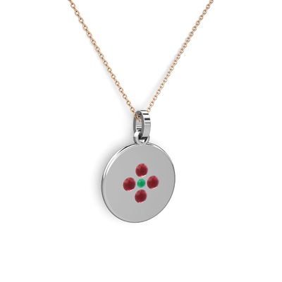 Kök zümrüt ve kök yakut 18 ayar beyaz altın kolye (40 cm rose altın rolo zincir)