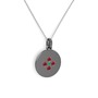 Kök zümrüt ve kök yakut 925 ayar siyah rodyum kaplama gümüş kolye (40 cm beyaz altın rolo zincir)