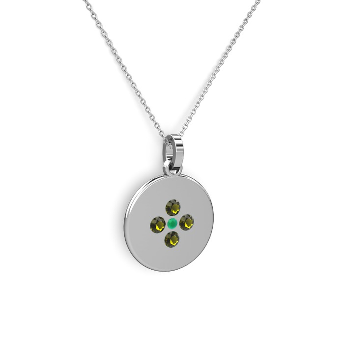 Kök zümrüt ve peridot 14 ayar beyaz altın kolye (40 cm beyaz altın rolo zincir)