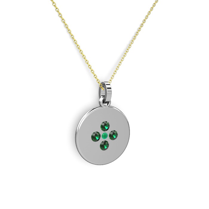 Kök zümrüt ve yeşil kuvars 18 ayar beyaz altın kolye (40 cm altın rolo zincir)