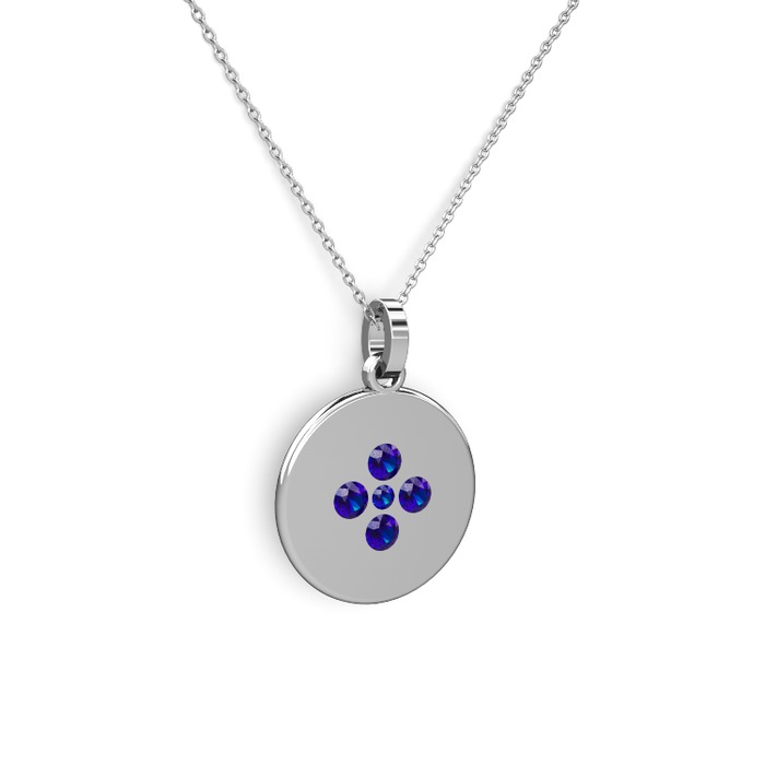 Lab safir 14 ayar beyaz altın kolye (40 cm beyaz altın rolo zincir)