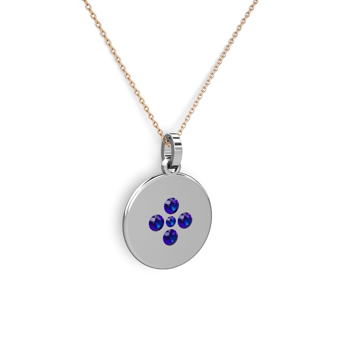 Lab safir 18 ayar beyaz altın kolye (40 cm rose altın rolo zincir)