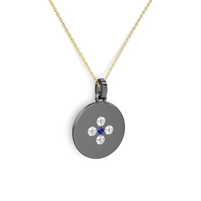 Lab safir ve pırlanta 925 ayar siyah rodyum kaplama gümüş kolye (0.44 karat, 40 cm altın rolo zincir)