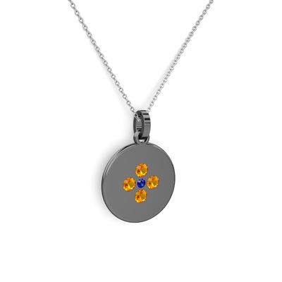 Lab safir ve sitrin 925 ayar siyah rodyum kaplama gümüş kolye (40 cm beyaz altın rolo zincir)