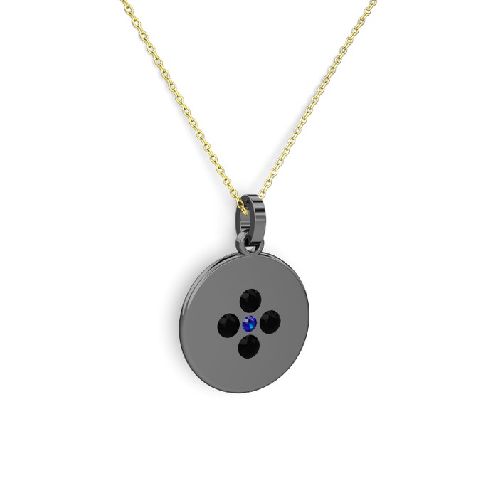 Lab safir ve siyah zirkon 925 ayar siyah rodyum kaplama gümüş kolye (40 cm altın rolo zincir)