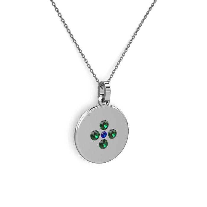 Lab safir ve yeşil kuvars 14 ayar beyaz altın kolye (40 cm gümüş rolo zincir)