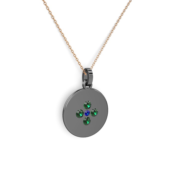 Lab safir ve yeşil kuvars 925 ayar siyah rodyum kaplama gümüş kolye (40 cm gümüş rolo zincir)