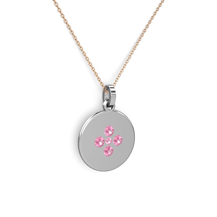 Pembe kuvars 18 ayar beyaz altın kolye (40 cm rose altın rolo zincir)