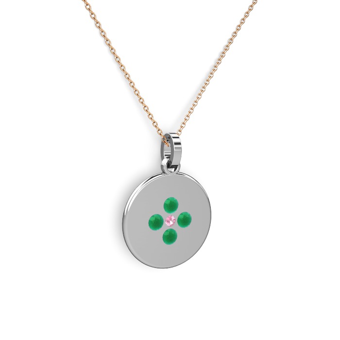 Pembe kuvars ve kök zümrüt 925 ayar gümüş kolye (40 cm rose altın rolo zincir)