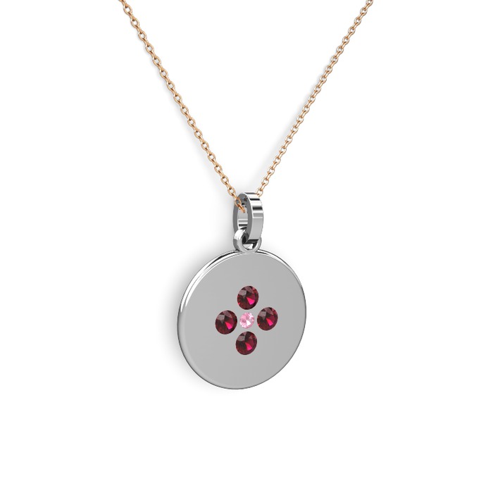 Pembe kuvars ve rodolit garnet 18 ayar beyaz altın kolye (40 cm rose altın rolo zincir)