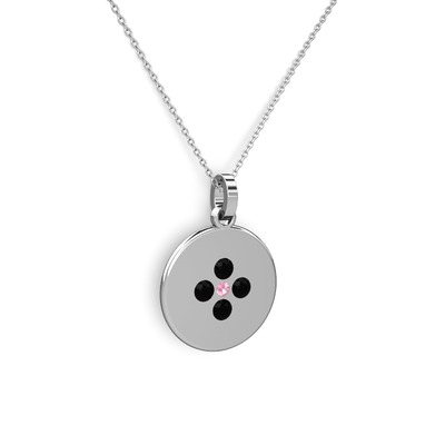Pembe kuvars ve siyah zirkon 18 ayar beyaz altın kolye (40 cm beyaz altın rolo zincir)