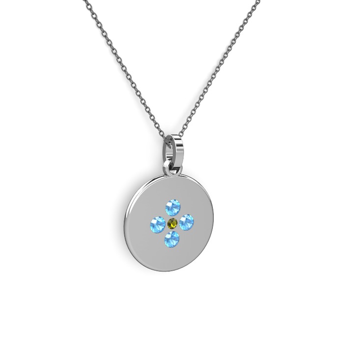 Peridot ve akuamarin 18 ayar beyaz altın kolye (40 cm gümüş rolo zincir)