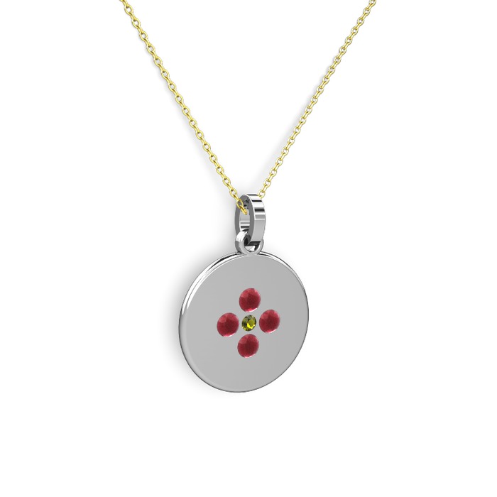 Peridot ve kök yakut 14 ayar beyaz altın kolye (40 cm altın rolo zincir)