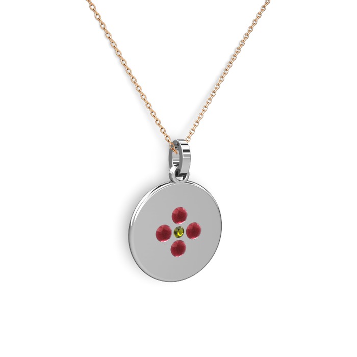 Peridot ve kök yakut 8 ayar beyaz altın kolye (40 cm rose altın rolo zincir)